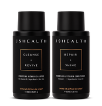 Elevate your hair and scalp health with our innovatively natural, science-focused 2-Step Vitamin Haircare System featuring the Purifying Vitamin Shampoo and Nourishing Vitamin Conditioner.