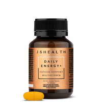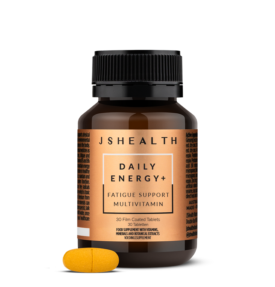 The JSHealth Daily Energy+ Formula contains American Ginseng, Rhodiola, B Vitamins, Vitamin C and Zinc, along with other nutrients.