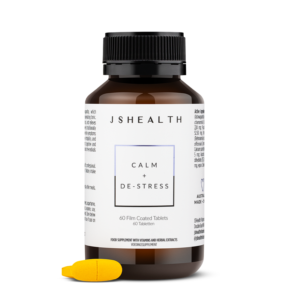 The JSHealth Calm + De-stress formula contains Ashwagandha, Saffron, Vitamin B5 and Vitamin C.