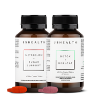 Contains 2 favourites, Metabolism + Sugar Support formula and Detox + Debloat formula.