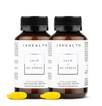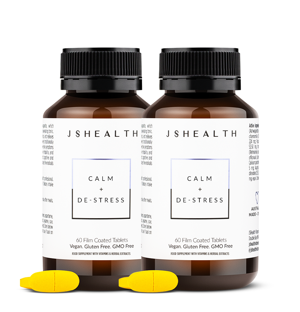 The JSHealth Calm + De-stress formula contains Ashwagandha, Saffron, Vitamin B5 and Vitamin C.