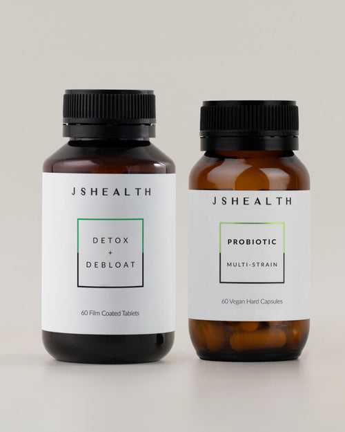 The JSHealth Detox + Debloat formula contains Milk Thistle, Fennel Seed and Turmeric.