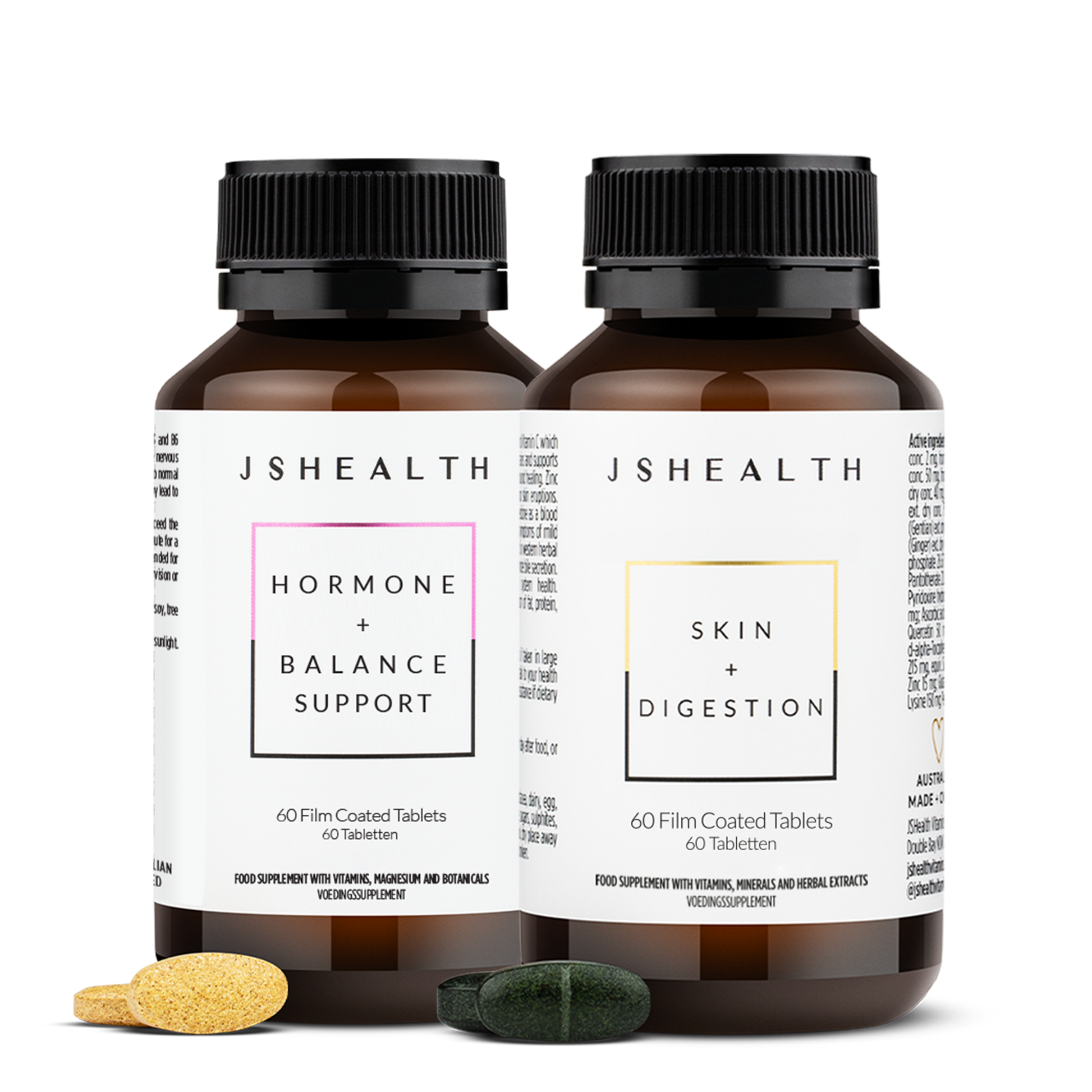 Jess' ultimate pair for gut/skin care and month-round support. The Glow + Flow Perfect Pairing contains the Skin + Digestion and Hormone + Balance Support formulas.