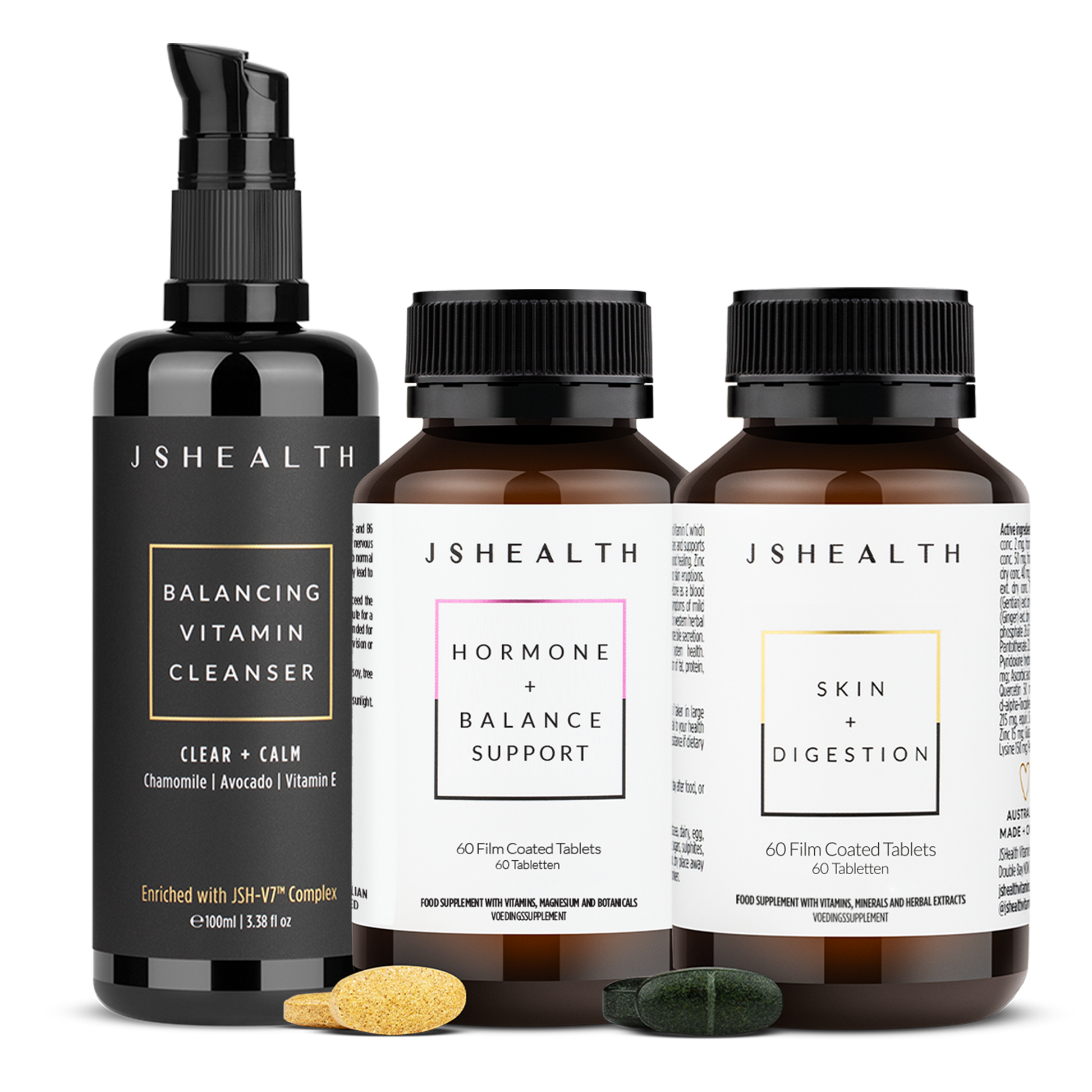 Jess' ultimate trio for gut/skin care and month-round support. Our Glow + Flow Trusted Trio contains the Skin + Digestion and Hormone + PMS formulas, along with the Balancing Vitamin Cleanser.