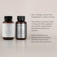 Hair + Energy For Men is built on the same best-selling base formula as our Hair + Energy supplement, now specifically enhanced for male wellness with additional ingredients. It contains our signature JSHealth Kelp™ blend (a complex of two kelp species containing Iodine) to support hair growth and health and specifically-dosed Zinc to support testosterone levels and hair thickness. Additionally, Hair + Energy For Men also contains Siberian Ginseng and Riboflavin to support stamina, physical endurance and energy levels, plus Ginkgo  can contribute healthy blood circulation.