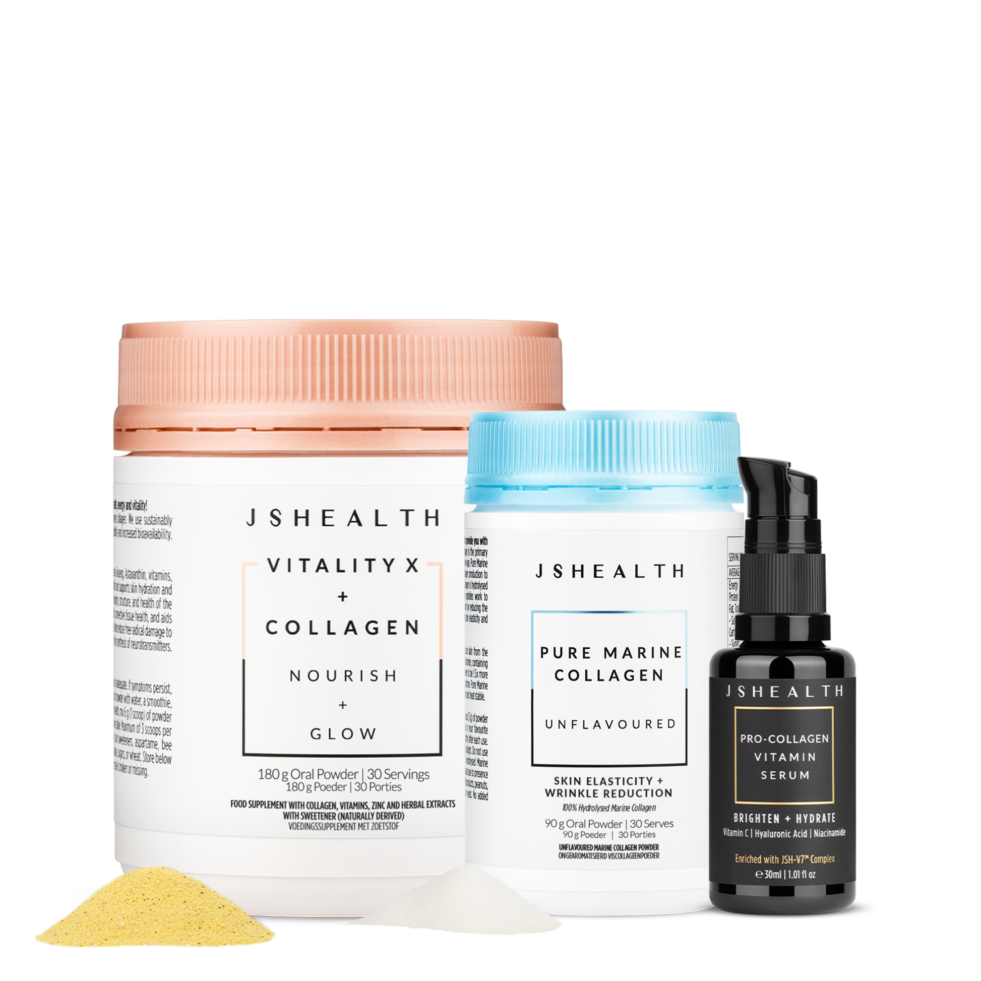 Jess' ultimate trio to hydrate and illuminate your skin from within. Our Quench + Glow Trusted Trio contains the Vitality X + Collagen and Pure Marine Collagen products.