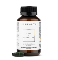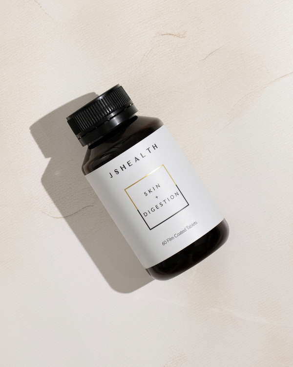 The JSHealth Skin + Digestion formula contains Vitamin B2, Vitamin C, Zinc, Burdock and Turmeric.