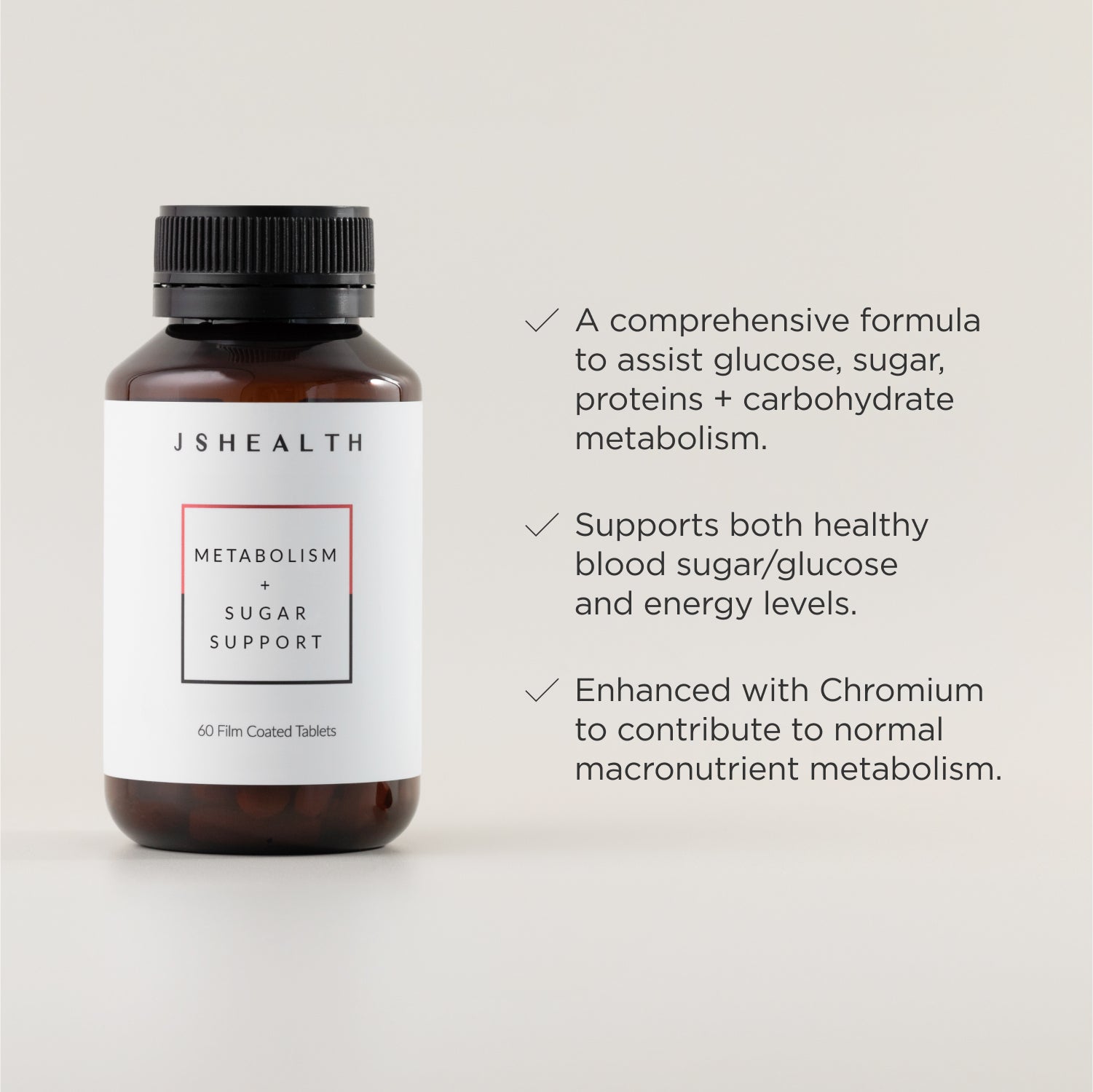 The JSHealth Metabolism + Sugar Support formula contains Chromium, Magnesium, Zinc, Cinnamon and Gymnema.